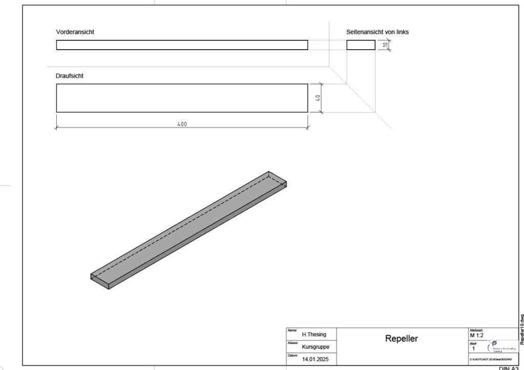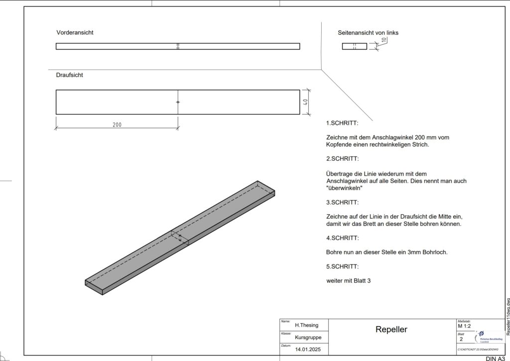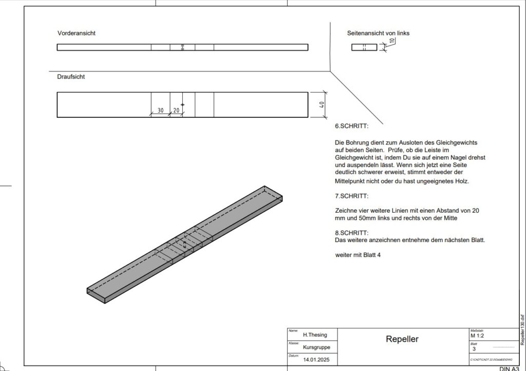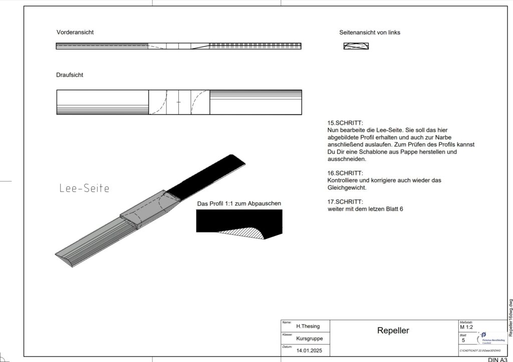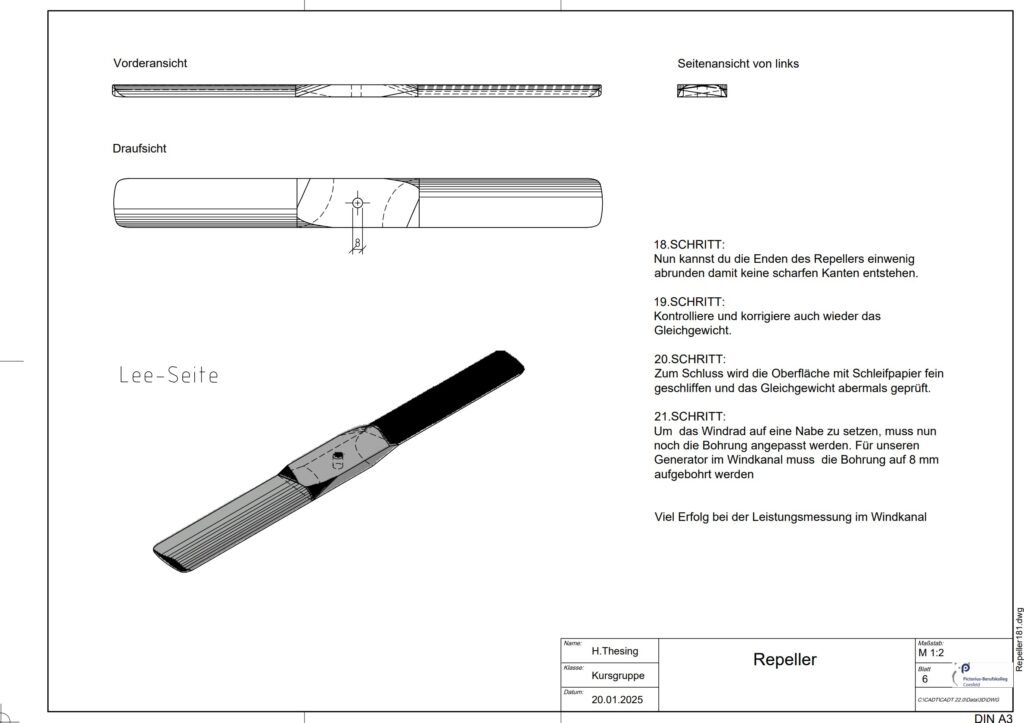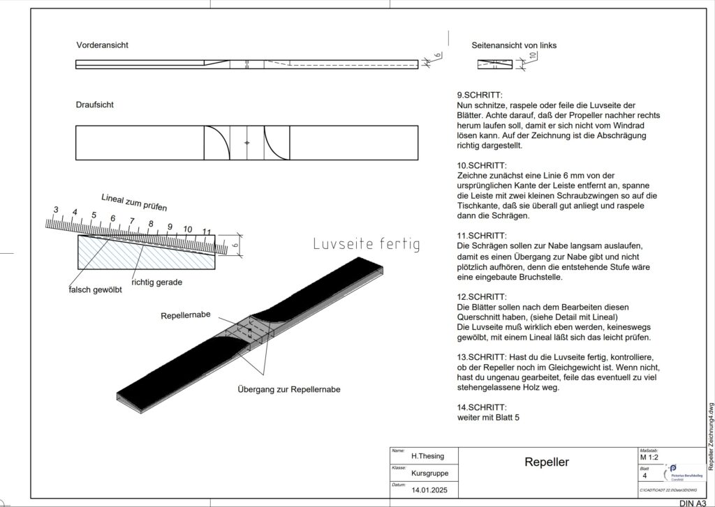 Im folgenden den Repeller drehen und von der Rückseite (Lee-Seite) bearbeiten!